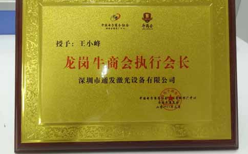 2018年3月23日,第九屆中國電子商務深圳十大牛商頒獎典禮在龍崗維也納國際酒店盛大舉行。深圳市通發激光設備有發公司王小峰總經理出席了頒獎典禮,并與九位來自不同行業的企業家共同獲得了深圳賽區十大牛商榮譽稱號。