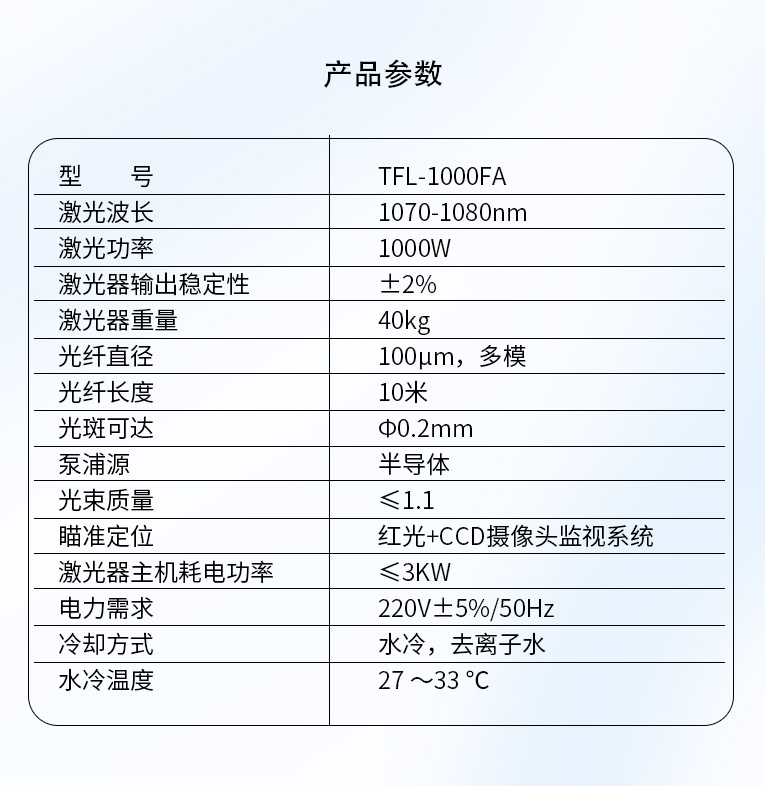 通發激光光纖激光器配置