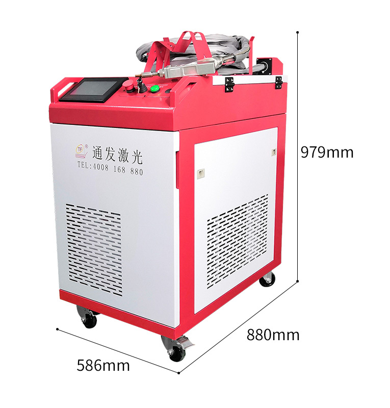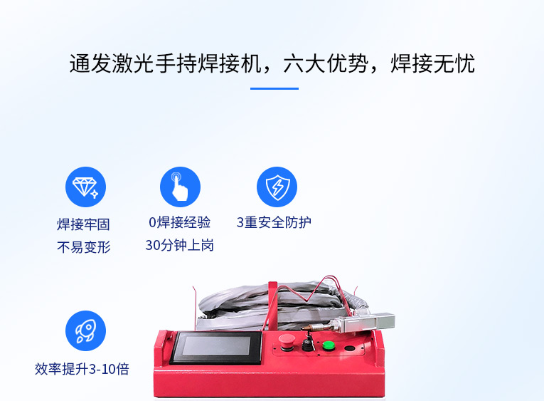 通發激光一體式手持式激光焊接機,用手持式焊接槍替代以前固定光路,手拿焊接,靈活方便,焊接距離更長,克服工作臺空間的局限性,工件尺寸不統一時無法自動焊接的情況下使用。主要針對大型工件、固定位置如內直角、外直角、平面焊縫焊接、焊接時熱影響區域小,變形小、而且焊接深度大,焊接牢固。是遠距離焊接大工件的較為靈活的全新的焊接工藝。