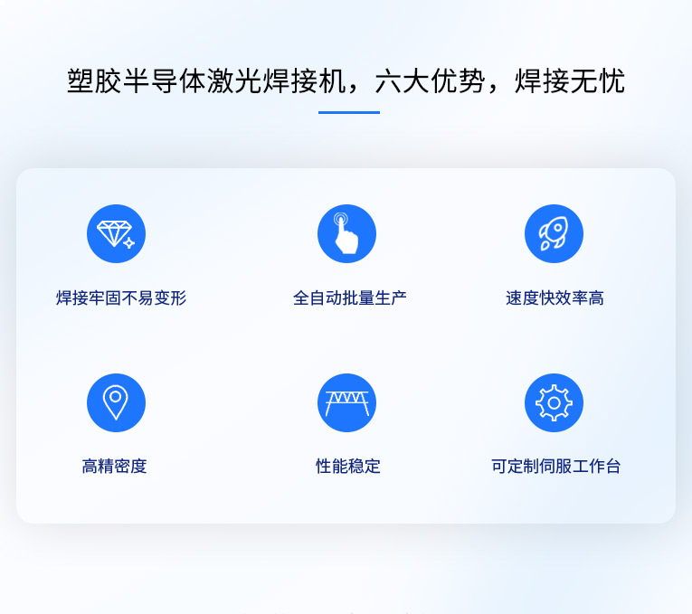 安全性:設(shè)備采用雙滑臺(tái)左右工位滑入進(jìn)行焊接,外部安全光柵 柔性化:進(jìn)出工作臺(tái)柔性化程度高,適合多種產(chǎn)品的安裝和定位,滑臺(tái)可帶旋轉(zhuǎn)機(jī)構(gòu)焊接圓形產(chǎn)品 精度高:各工序采用精密加工裝配,嚴(yán)格控制工序變形 焊縫特點(diǎn):焊接精密、牢固和密封的焊接 床身結(jié)構(gòu):高架式結(jié)構(gòu),XZ軸移動(dòng),擁有最大的加工空間,極高的動(dòng)態(tài)性能 通用性:六軸機(jī)構(gòu)設(shè)備雙工位工滑臺(tái)焊接,XZ軸左右切換焊接,并可加裝旋轉(zhuǎn)工裝焊接。